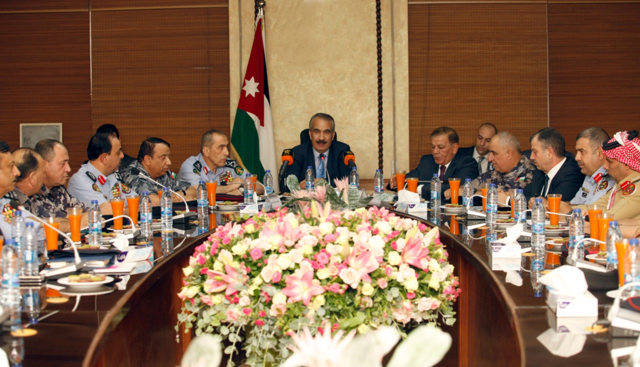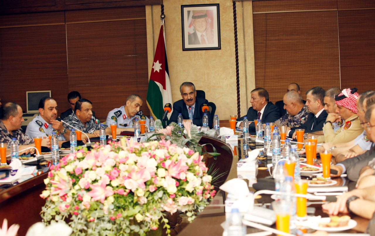جاء ذلك لدى ترؤسه مساء امس الثلاثاء اجتماعا للمجلس الامني والحكام الاداريين في مبنى محافظة العاصمة ، بحضور مدراء الامن العام اللواء فاضل الحمود وقوات الدرك اللواء الركن حسين الحواتمة والدفاع المدني اللواء مصطفى البزايعة ومحافظ العاصمة الدكتور سعد الشهاب، وقادة الادارات الامنية في محافظة العاصمة وعدد من المسؤولين.