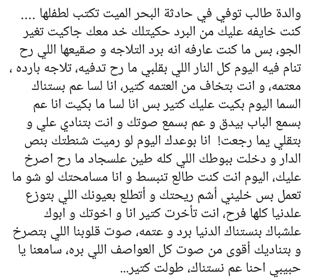 دمت قلوب الآلاف من الاردنيين بعد قراءة ما كتبته والدة احدى الطلبة الذين استشهوا اثر كارثة السيول في البحر الميت يوم أمس الخميس.
