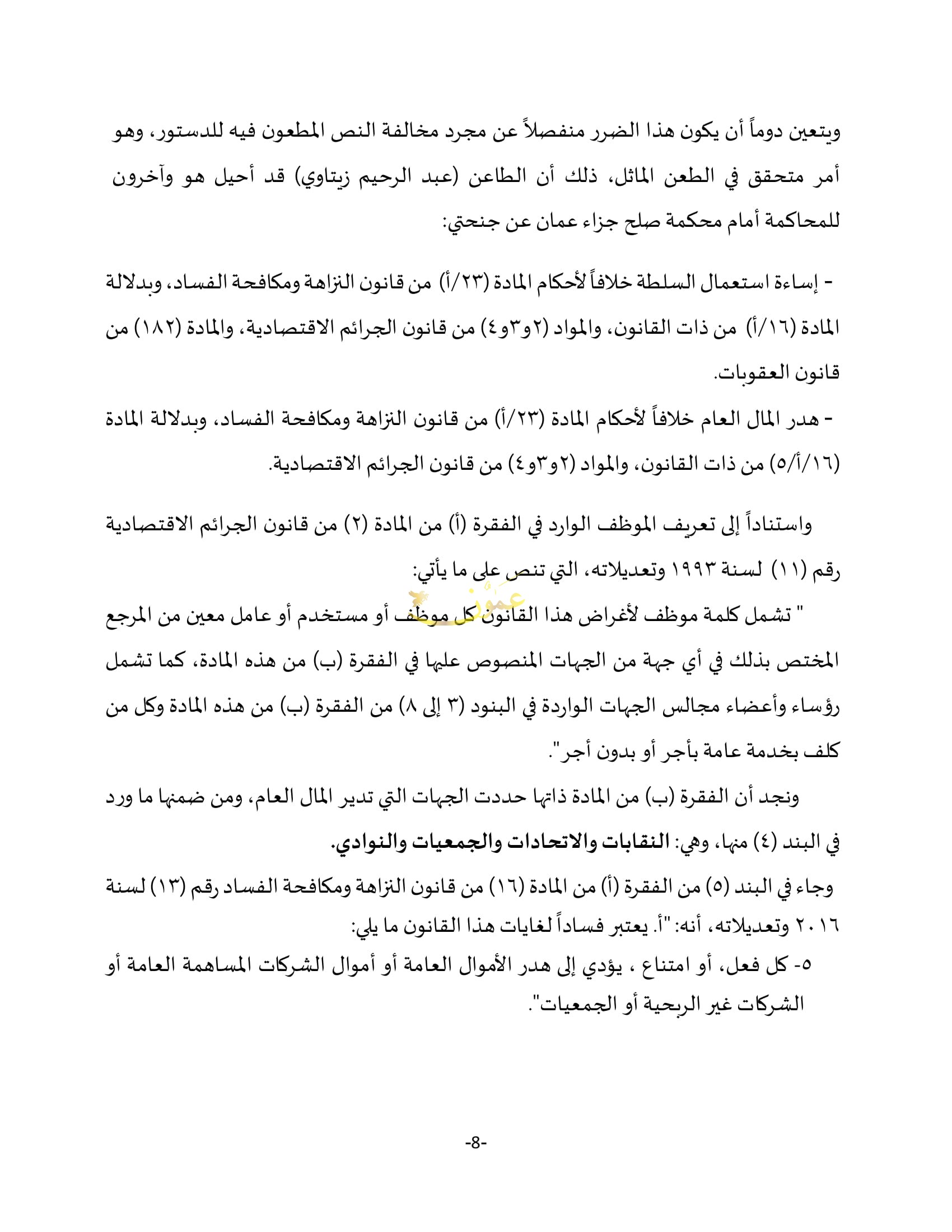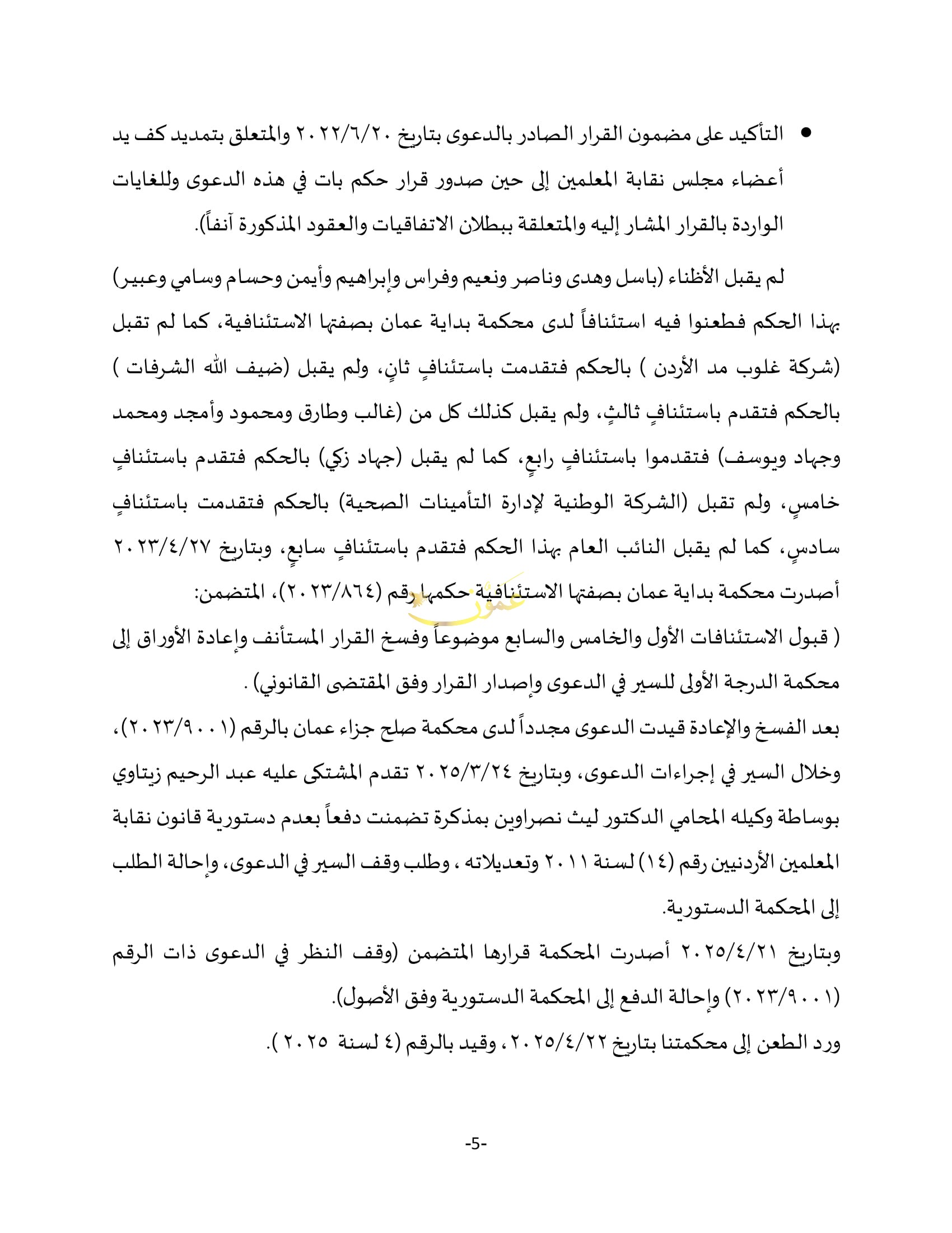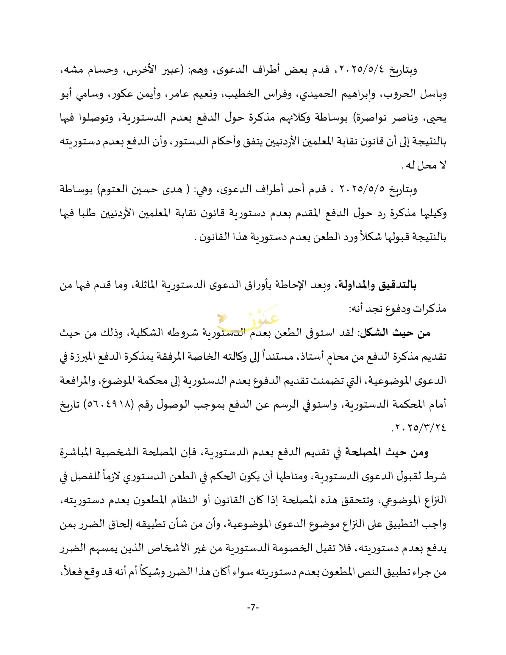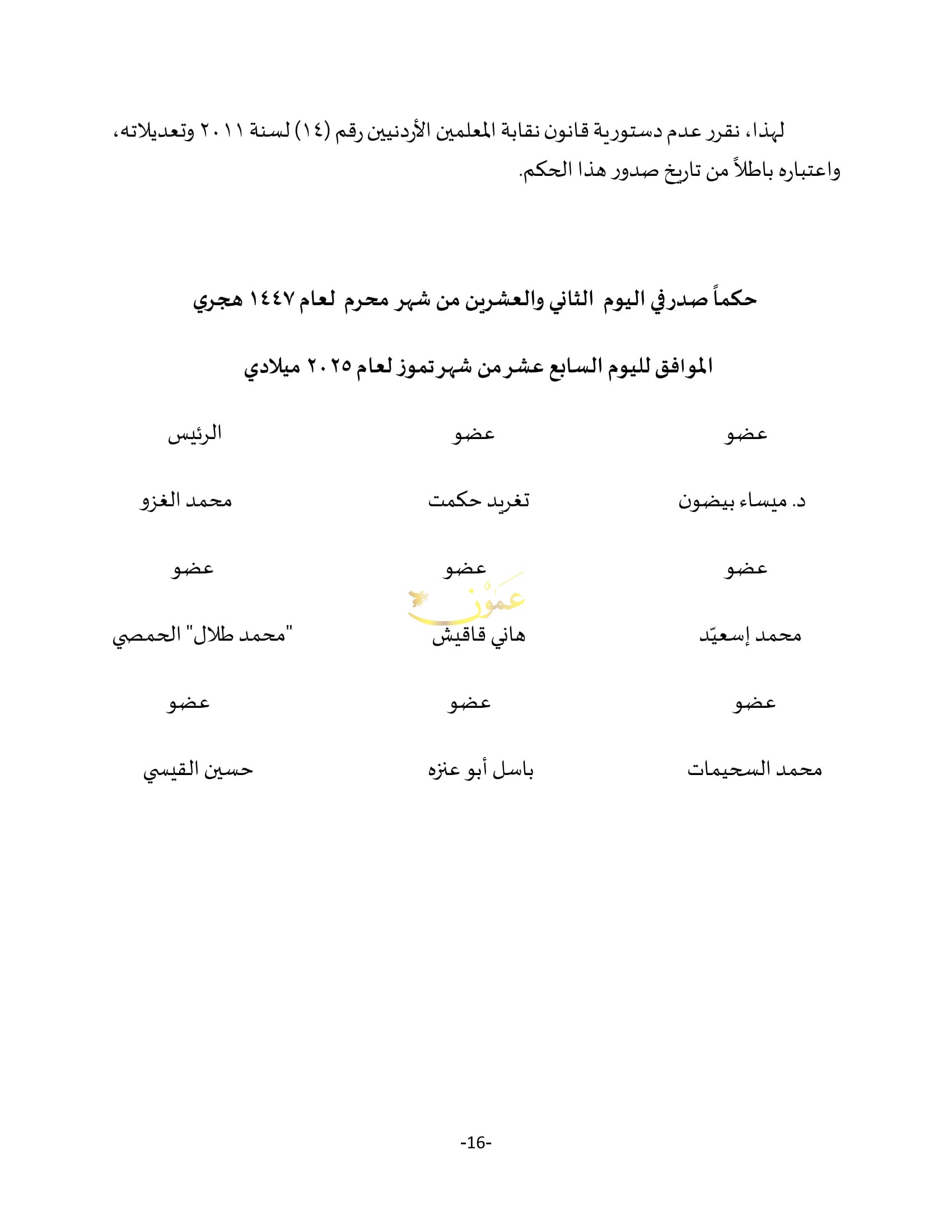 نص قرار المحكمة القاضي بعدم دستورية قانون نقابة المعلمين