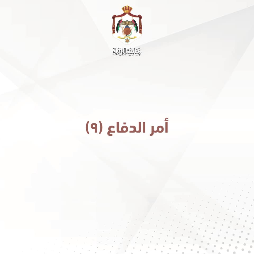 :نشرت رئاسة الوزراء عبر صفحتها على الفيسبوك نص أوامر الدفاع رقم 9 الذي اعلن عنه رئيس الوزراء عمر الرزاز اليوم الخميس.