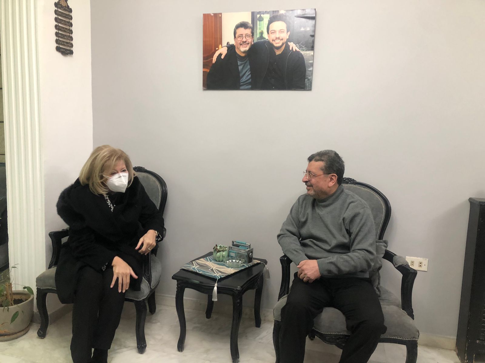 وشملت الجولة زيارة للفنانين سلوى العاص، وهشام يانس، وربيع شهاب، للاطمئنان على أحوالهم الصحية واستذكرت معهم أهم المحطات الفنية والوطنية والثقافية التي أسهموا في انجازها وتركت اثرا طيبا في ذاكرة الوطن.