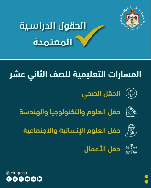 وتضمنت التعديلات تقليص عدد الحقول الدراسية لطلبة الصف الثاني عشر إلى 4 حقول بدلا من 6، بما يحقق رغبات الطلبة ويساعدهم على اختيار الحقل الأنسب وفق إمكاناتهم واستعداداتهم.