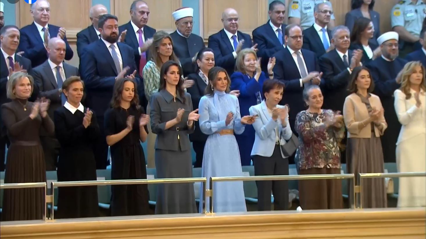 وحضرت جلالة الملكة رانيا العبدالله والأميرات رجوة الحسين، وسلمى بنت عبدالله، خطاب العرش السامي من شرفات المجلس.